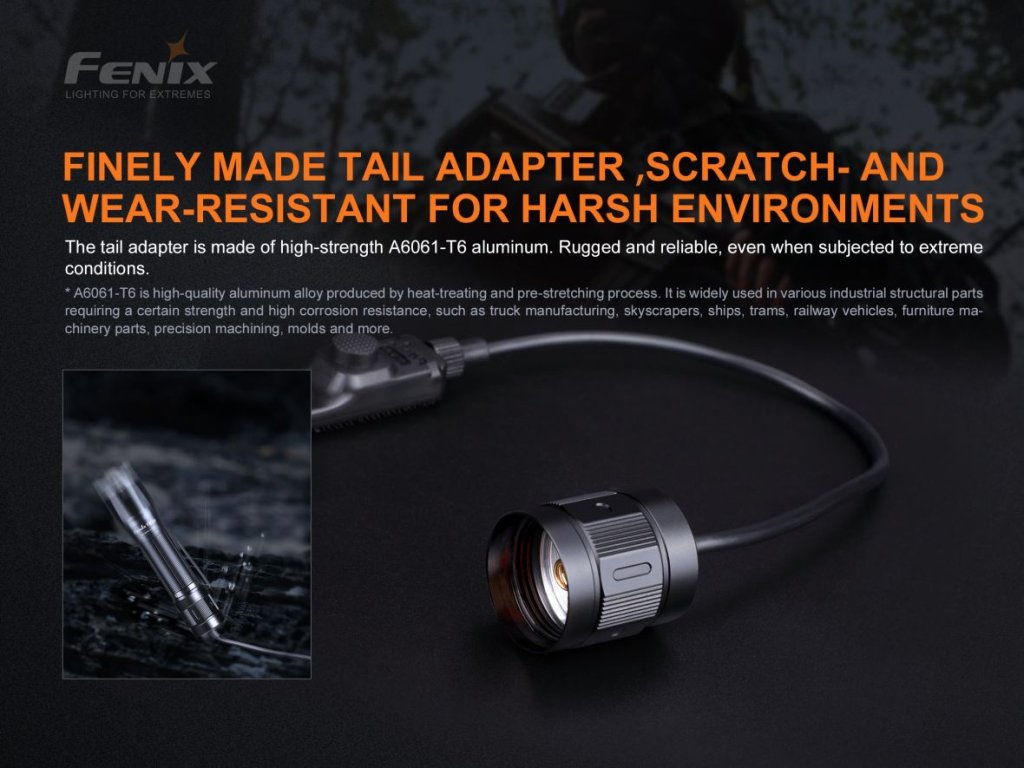 Taktický káblový spínač AER-05 pre svietidlá Fenix PD36R PRO, PD36 TAC, PD45R ACE, TK16 V2.0, TK17, TK20R V2.0, TK20R UE, TK21R, TK22 TAC, TK22R, TK30R, HT18R, HT30R a HT32 (iba biele svetlo). (pozor, nie je kompatibilný so staršími verziami týchto modelov). Vhodný na použitie so svietidlom namontovaným na dlhej zbrani. Na konci kábla sú umiestnené dva bezhlučné spínače. Jeden tlačidlový s funkciou okamžitej aktivácie jemným stlačením a taktiež možnosťou trvalého rozsvietenia svetla (vždy do maximálneho výkonu) a druhý plochý tlakový spínač na zapnutie stroboskopu. Spínač je navyše vybavený suchým zipsom, čo vám pomôže s jeho umiestnením kamkoľvek na zbraň. Na uchytenie tlačidiel na zbraňovú lištu odporúčame dokúpiť montáž Fenix ALG-05.