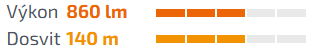 - Plynulý svetelný kužeľ s dosvitom až 140 metrov (4 890 cd)